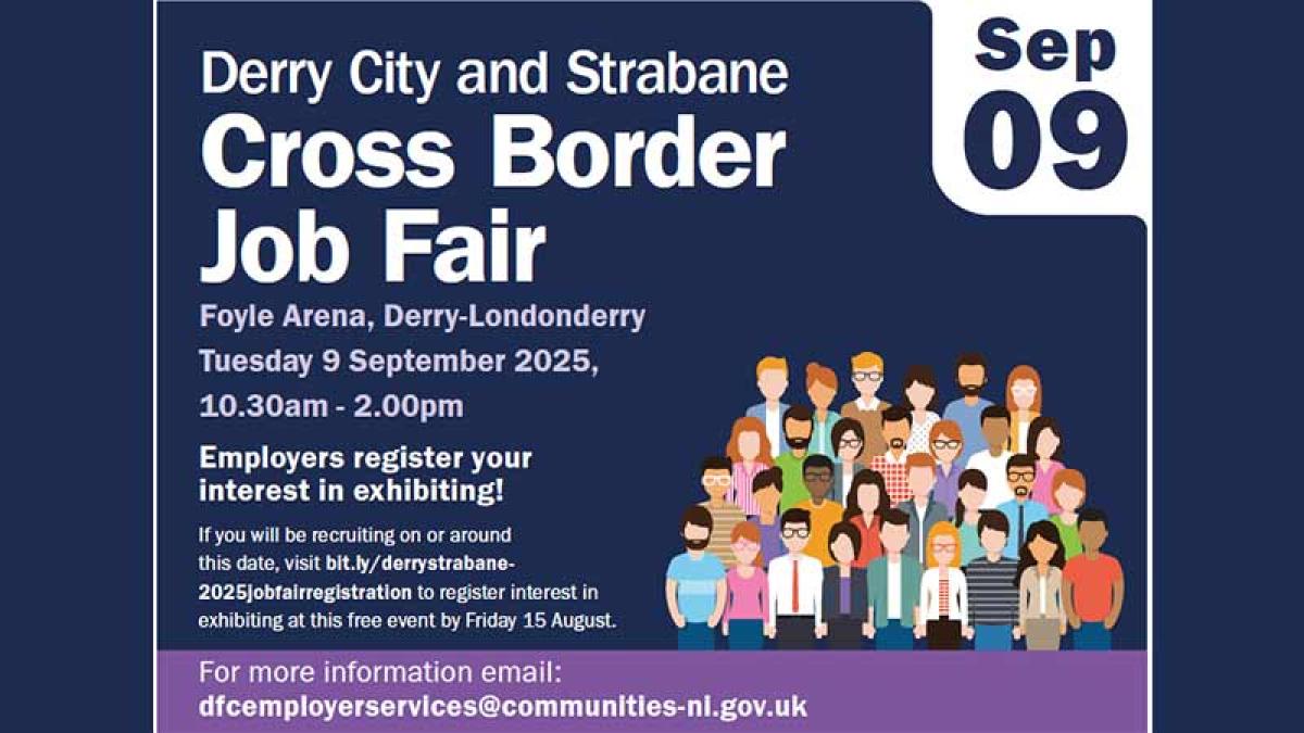 The Department for Communities has opened employer registration for the upcoming Derry City and Strabane Cross Border Job Fair, which will be delivered in partnership with Derry City and Strabane Labour Market Partnership and the Cross Border Partnership for Employment Services.