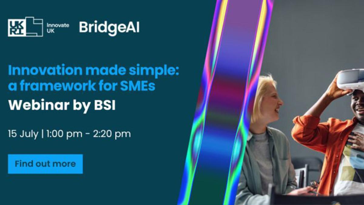 The webinar, delivered by BSI as part of the Innovate UK BridgeAI programme, will explain how ISO 56001 helps SMEs manage innovation in a structured way.